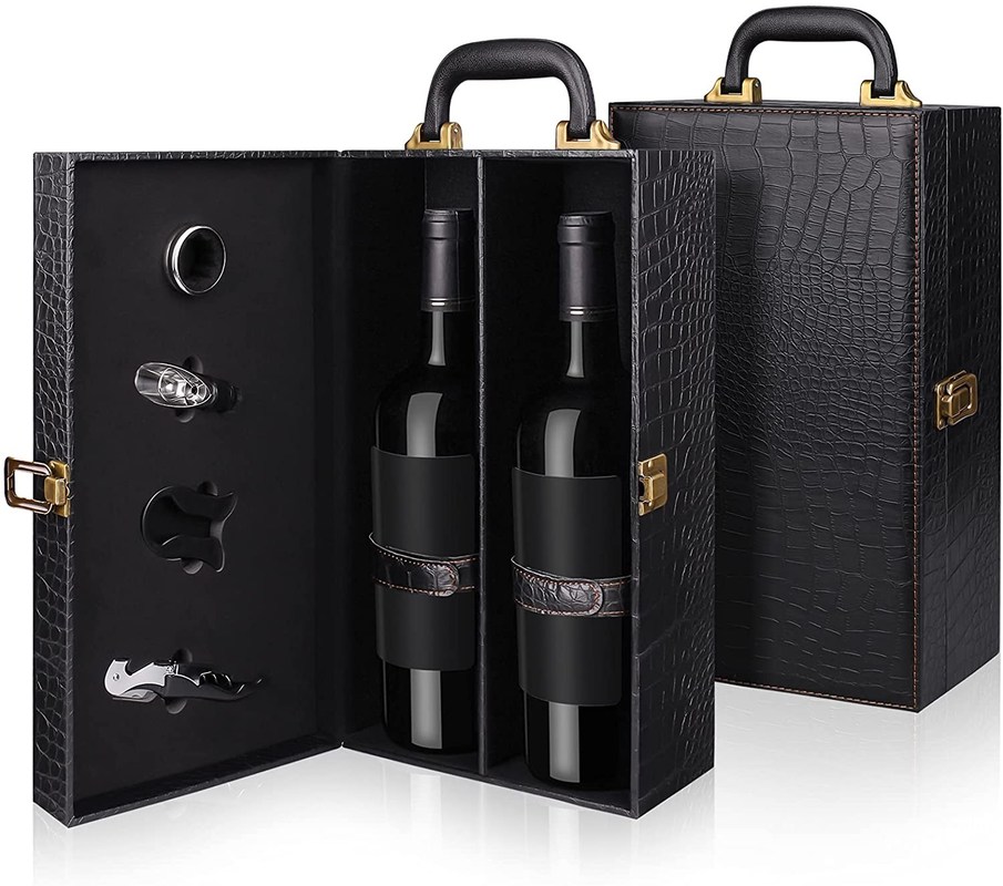 Yeni Stil Pu Ahşap Tahıl Kırmızı Şarap Ambalaj Hediye Kutusu Taşınabilir Çift Şişe Şarap Kutusu